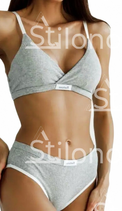 Комплект нижнего белья в рубчик / топ и трусы